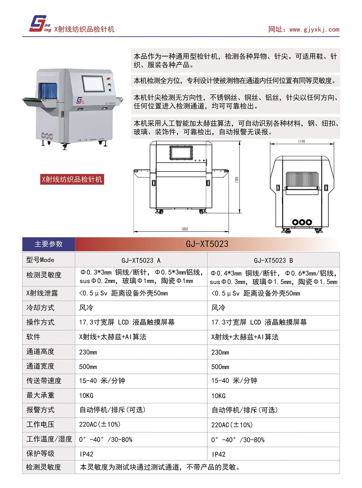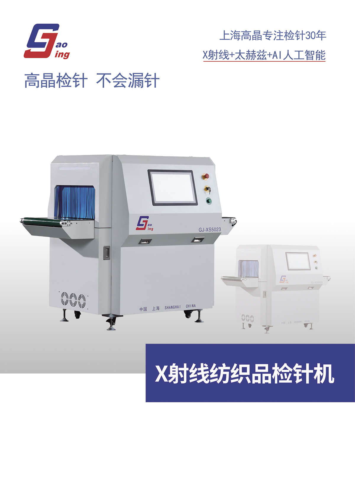 本品作為一種通用型檢針機,檢測各種異物、針尖。可適用鞋、針織、服裝各種產品。 本機檢測全方位,專利設計使被測物在通道內任何位置,有同等靈敏度。 本機針尖檢測無方向性,不銹鋼絲,鋼絲,鋁絲,針尖以任何方向、任何位置進入檢測通道,均可可靠檢出。 本機采用人工智能加太赫茲算法,可自動識別各種材料、鋼、紐扣,玻璃,裝飾件,可靠檢出,無誤報。